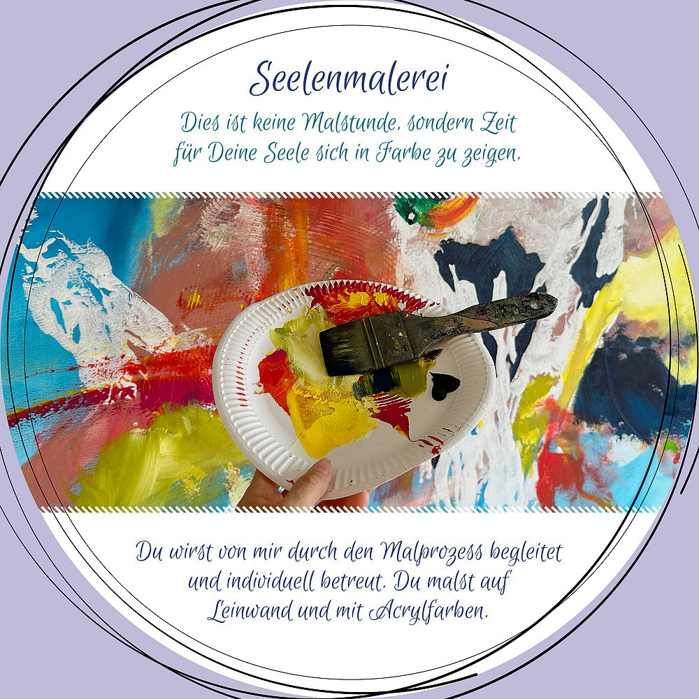 In der Seelenmalerei geht es um Dich und Dein Gefühl, welches Du in Farbe ausdrückst. Es geht NICHT darum etwas darzustellen, das ist auch möglich, aber es geht vielmehr darum, dass Du nicht mit Deinem Kopf versuchst etwas zu erschaffen, sondern Dich inspirieren zu lassen von allem, was in Dir ist. Ich begleite Dich auf diesem Weg.